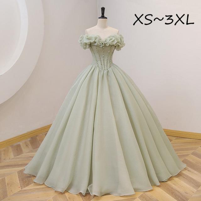 ドレス レディース ロング丈 ピアノ 発表会 パーティードレス 結婚式 ワンピース イブニングドレス フォーマル 大人 ドレス エレガント お呼ばれ 二次会 披露宴 演奏会 忘年会 司会ドレス 大きいサイズ グリーン