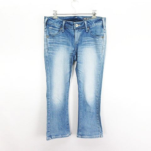 【中古】サムシング S2350 デニム ジーンズ クロップド ユーズド加工 ストレッチ M ライトブルー ※EKM レディース