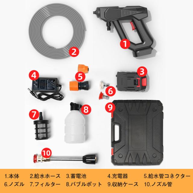 高圧洗浄機 コードレス 充電式 マキタ バッテリー対応 フルセット 大容量バッテリー 収納ケース付き 高性能 自吸式 軽量 洗車 強力噴射