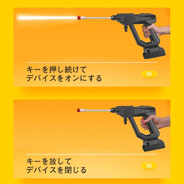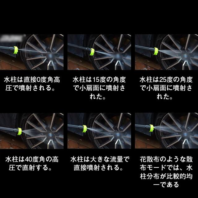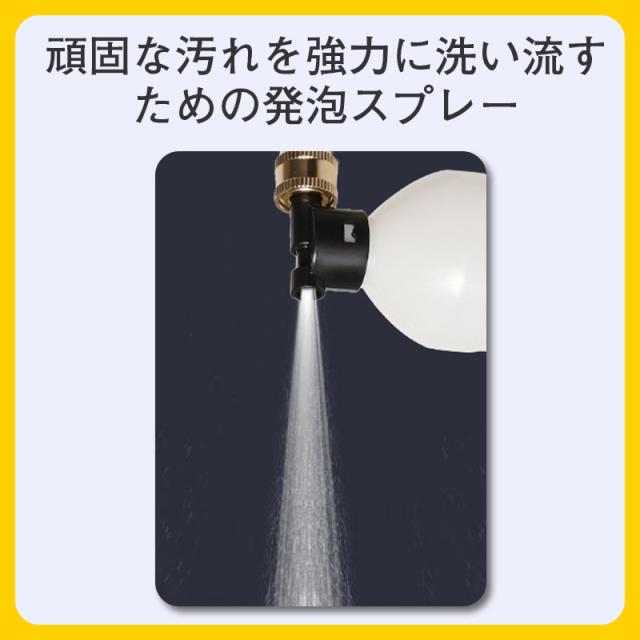 多機能ノズル付き洗車機:使用場所に合わせて最適なノズル(6in1ノズル、標準高圧ノズル、フォームノズル)を選択することができ、作業がより便利で効率的になります。