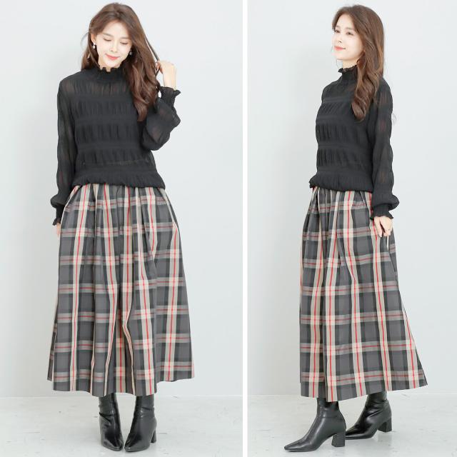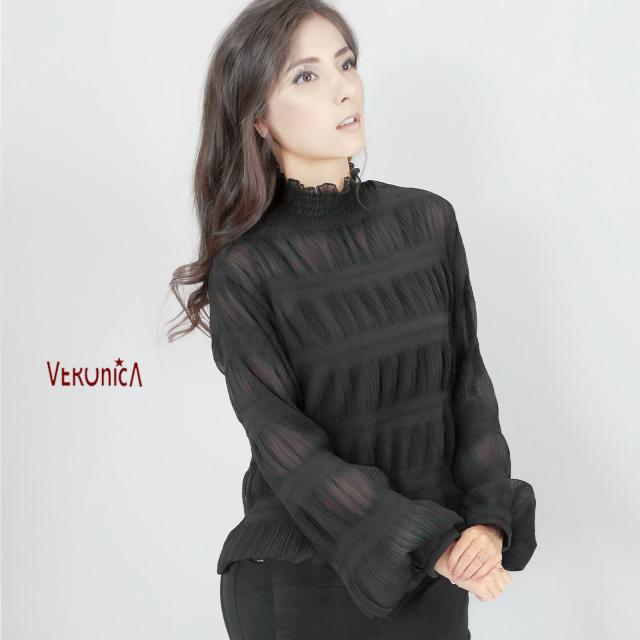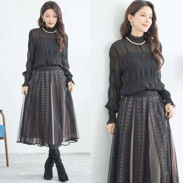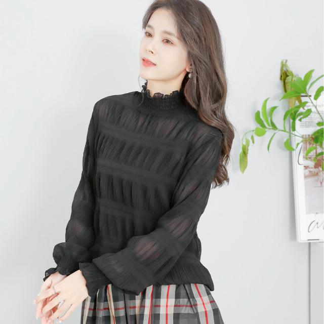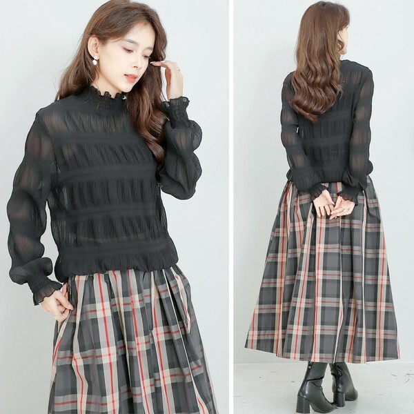 【即納】シャーリングシフォントップス ブラウス 無地 フェミニン シースルー 透け感A W 秋冬 新作