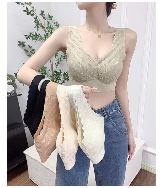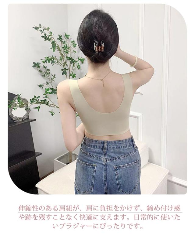 シームレスブラ ノンワイヤー ノンライン美背 ブラジャー レディース 盛り上げ 薄手 レース ベスト型 大サイズ ノーストラップ スポーツブラ