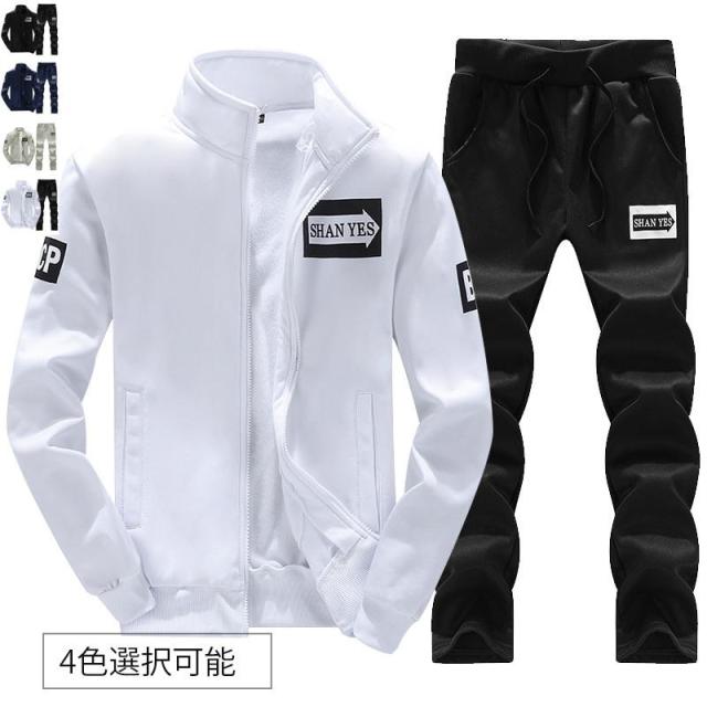 ジャージ 上下セット メンズ セットアップ スウェット パーカー 襟付き 春秋 スポーツウェア トレーニングウェア 男性用 紳士 シンプル 大きいサイズ M〜4XL