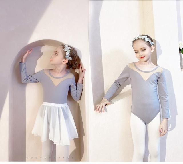 キッズレオタード バレエレオタード 子ども スカート付き チュール 練習着 グレー ノースリーブ バレエダンス バレエ レオタード 長袖 半袖 股下スナップ 女の子 キッズ ジュニア 子供ダンス衣装