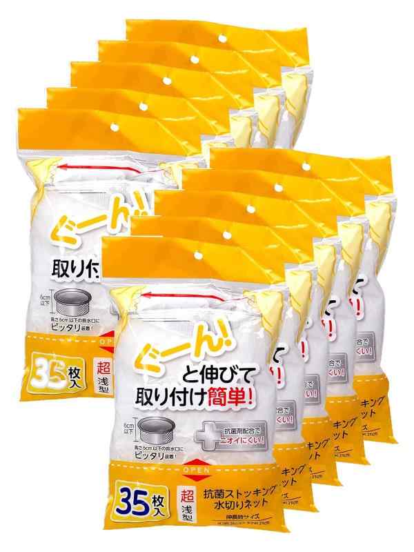 [ストリックスデザイン] 水切りネット ぐーん と伸びて取り付け簡単 100枚 約32×33cm ストッキング 深型 三角コーナー 兼用 抗菌 排水口 排水溝 ネット 大容量 SA-092 (超浅型, 35枚入×10)