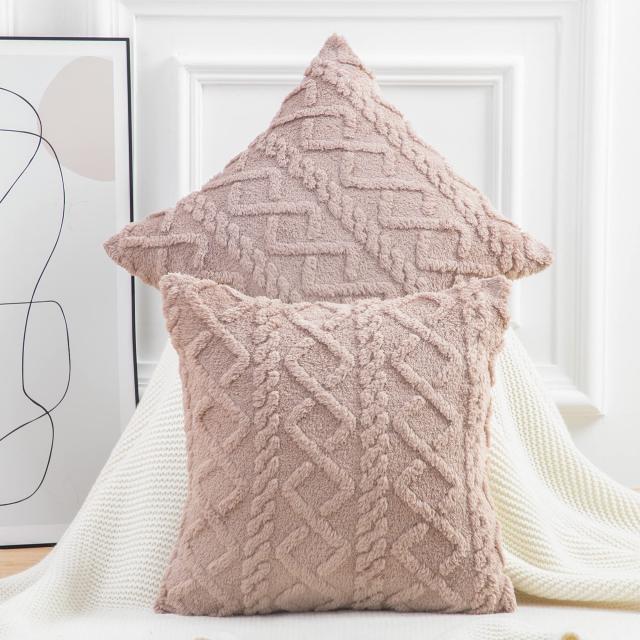 Madizz クッションカバー 2枚セット 55×55cm ブラウン 北欧 柔らかい 短いウール フリース 背当て 装飾 枕カバー 座布団カバー ソファ用