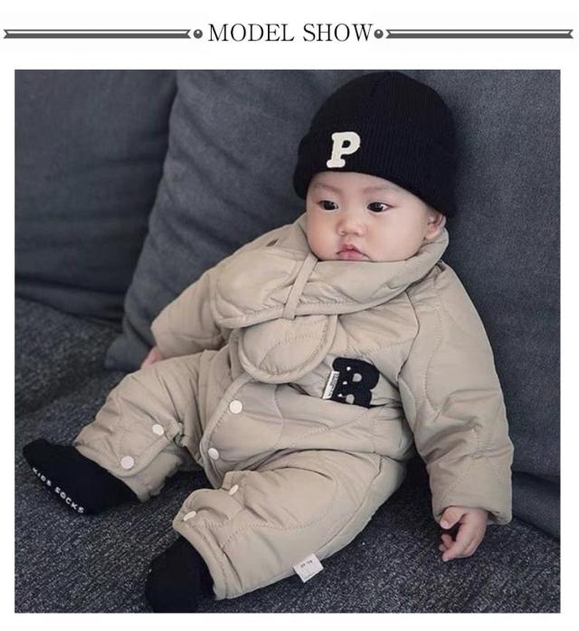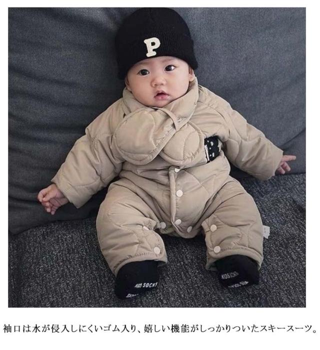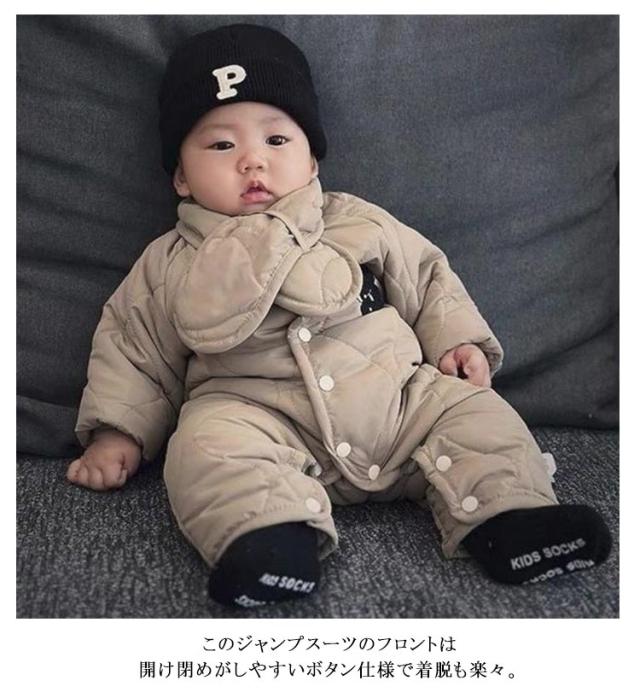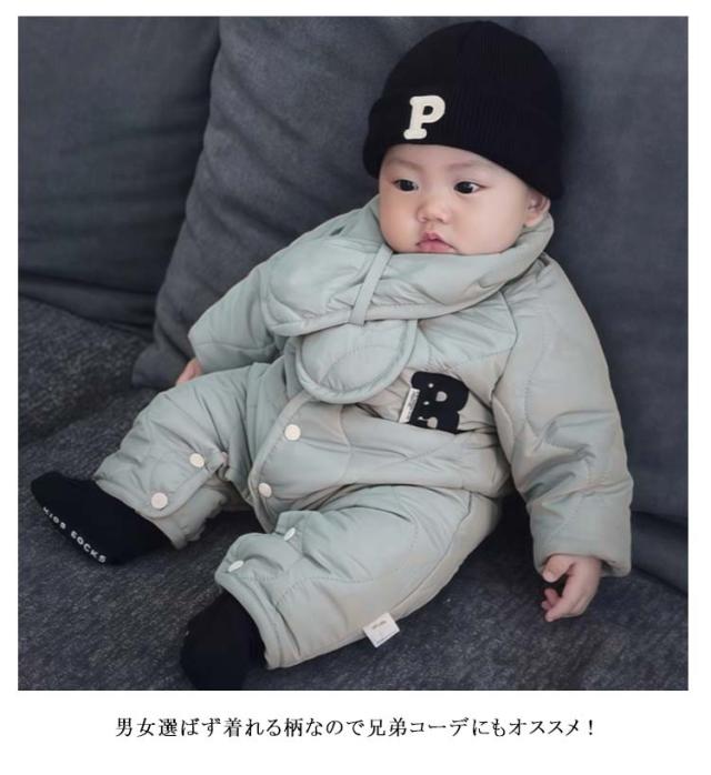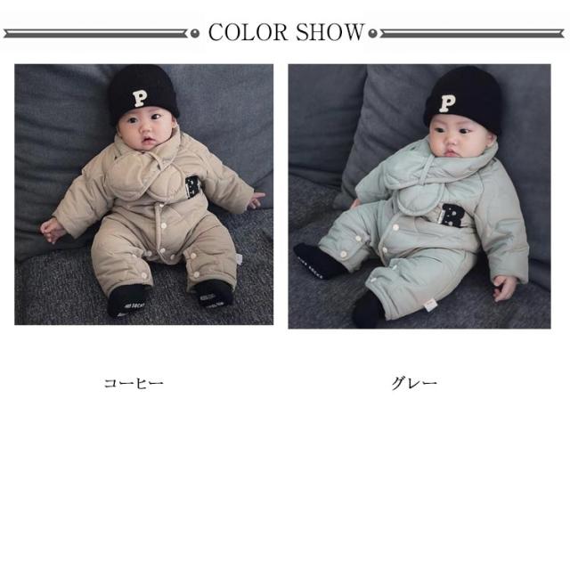 カバーオール ベビー 裏ボア マフラー付き 秋冬 ジャンプスーツ 子供服 中綿 アウター ベビー服 男の子 ジャンプスーツ 新生児 キッズ 前開き 女の子 長袖 スノーウェア 出産祝い 雪遊び 撥水 防水 防寒 秋冬 赤ちゃん服 裹起毛 66 73 80 90 100