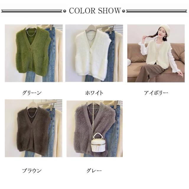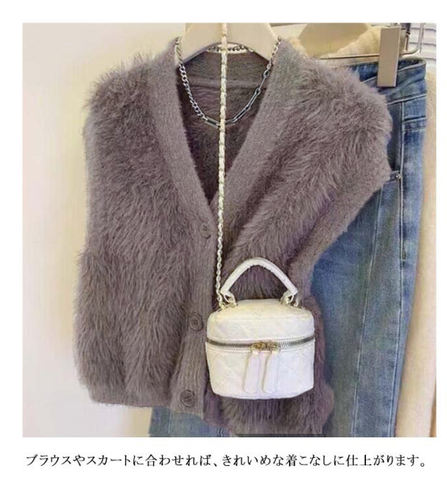 シャギーニットベスト レディース 春秋 前開き シャギーベスト Vネック レイヤード シャギー ジレ 大人可愛い ニットトップス 毛足長め 伸縮性 エコファー ライトアウター 体型カバー 可愛い きれいめ 送料無料