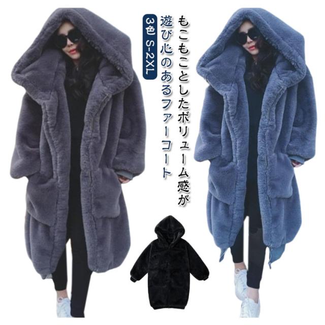 ボリュームファーコート ボア 秋冬 ボアコート ゆったり フード ファー ロングコート マキシ丈 レディース ボリュームファーコート フェイクファー ロング ムートンコート ロング丈 アウター ふわふわ 防寒 モコモコ カジュアル 大人可愛い フード付き ポッケト 暖かい