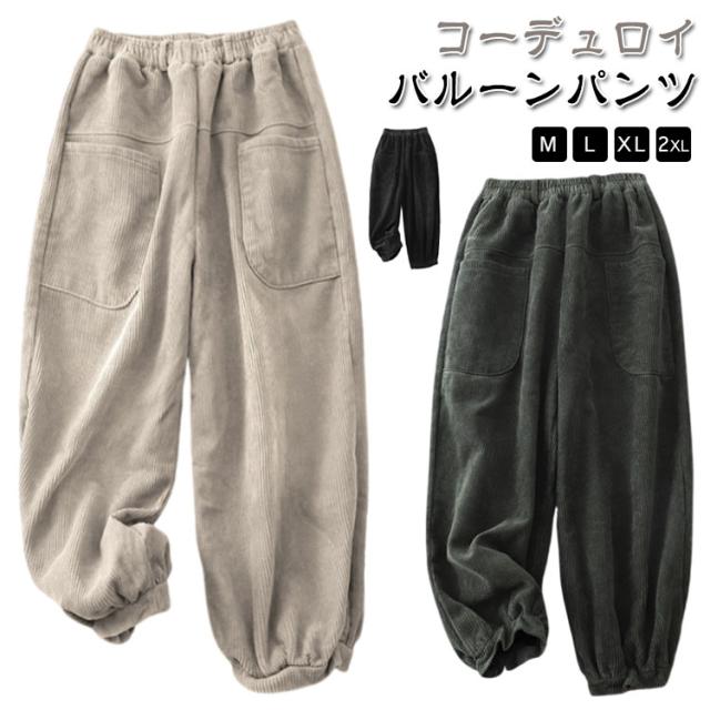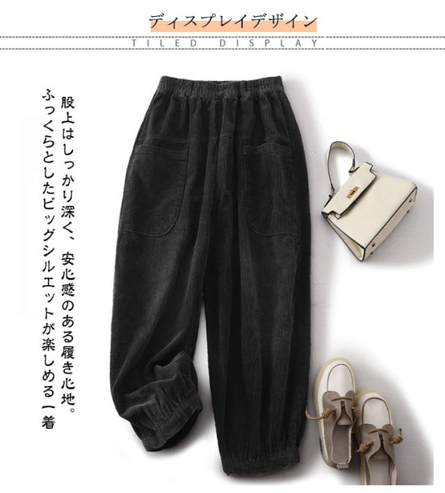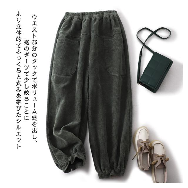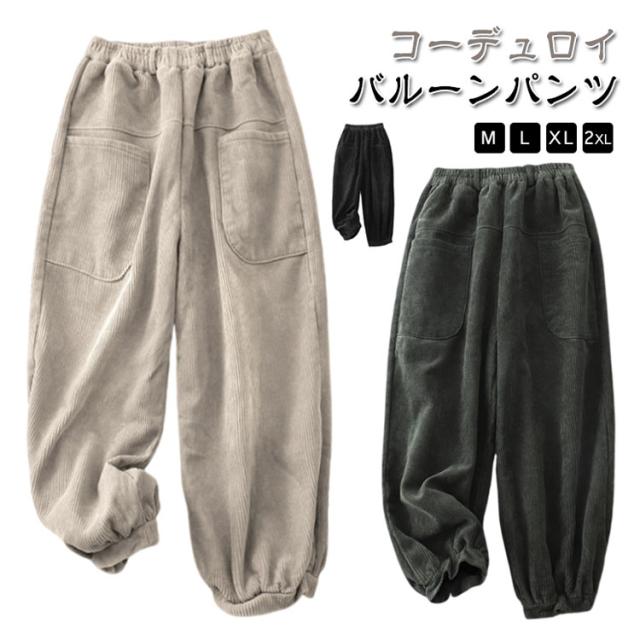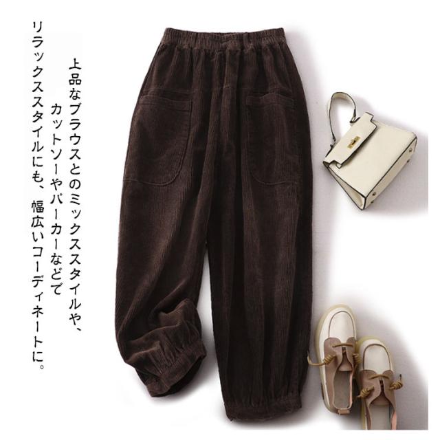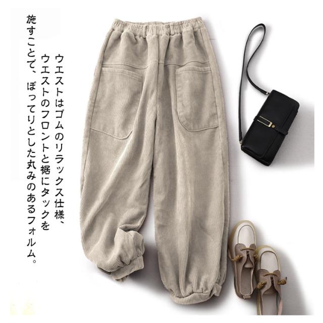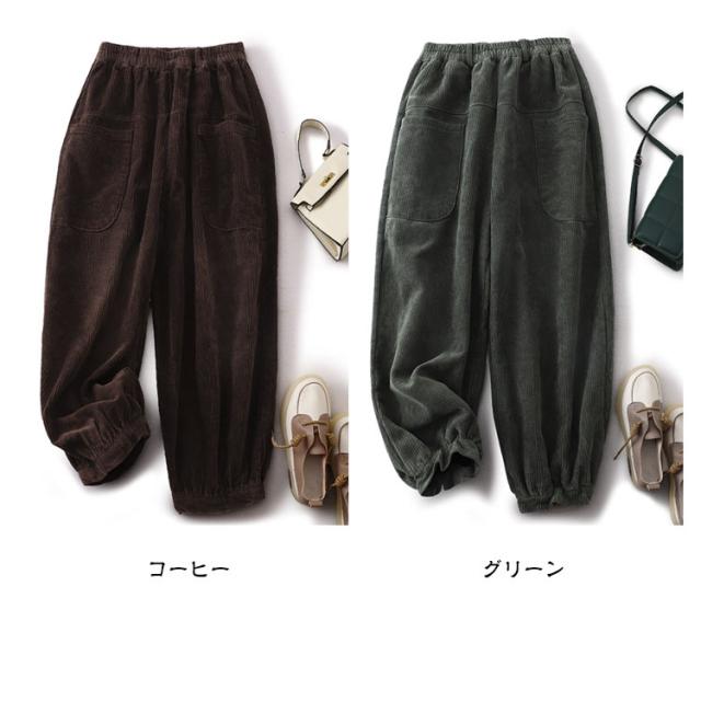 コーデュロイ 秋冬 ロングパンツ パンツ ワイドパンツ ボトムス ウエストゴム 無地 コーデュロイパンツ ポケット付き コーデュロイ ゆったり ズボン レディース 体型カバー サーカスパンツ 美脚 楽ちん ハイウエスト