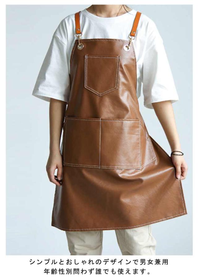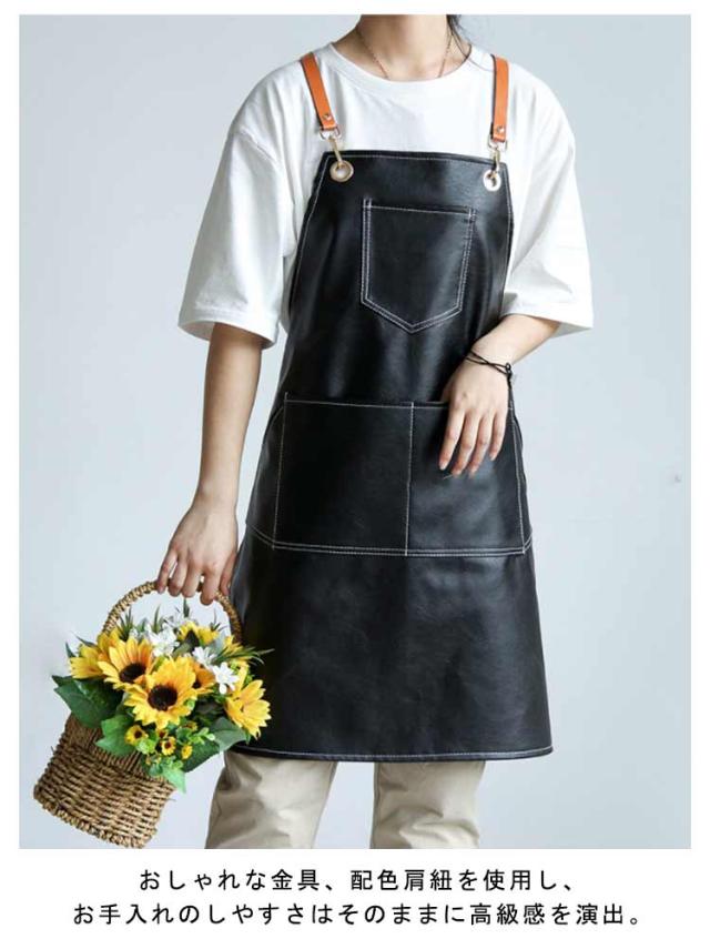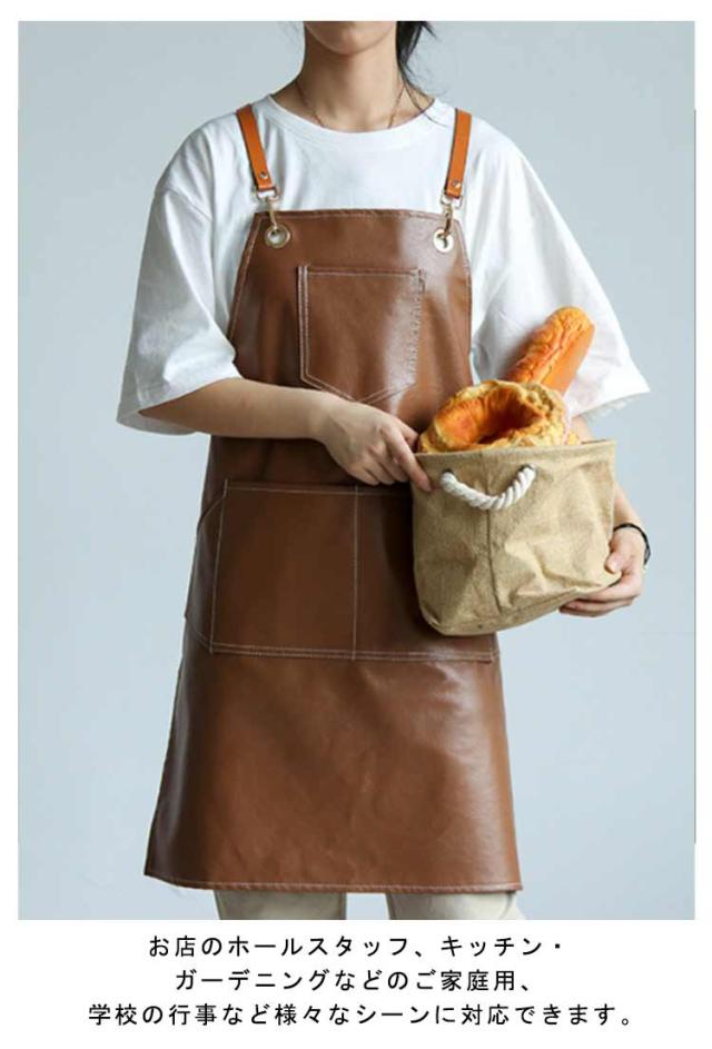 ポケット付き 防水エプロン バッククロス 北欧 PUレザーエプロン 喫茶店 エプロン 業務用 美容師 カフェ おしゃれ キッチン メンズ レディース 男女兼用 大きいサイズ ロング丈 作業用 ガーデニング 水場 汚れにくい PUレザーエプロン 家庭用