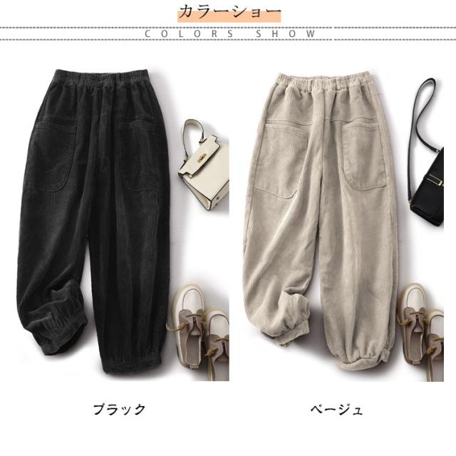 ポケット付き 秋冬 レディース パンツ ウエストゴム 体型カバー バルーンパンツ 無地 コーデュロイパンツ コーデュロイ ロングパンツ ゆったり ボトムス ズボン コーデュロイ サーカスパンツ 美脚 楽ちん ハイウエスト