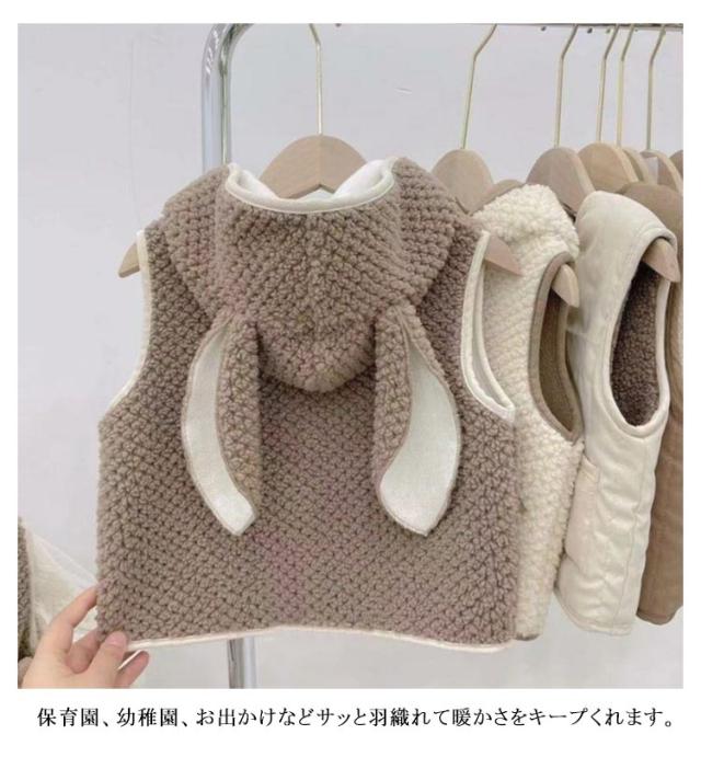子供服 ベスト うさぎ あったか 韓国子供服 子供服 裏起毛 可愛い 女の子 ゆったり ボアベスト おしゃれ フード付き キッズ 薄手 カジュアルウエア 入学式 トップス 通学 ことも服 ジュニア服 小学生 入園式 男の子 卒園式 卒業式 2色