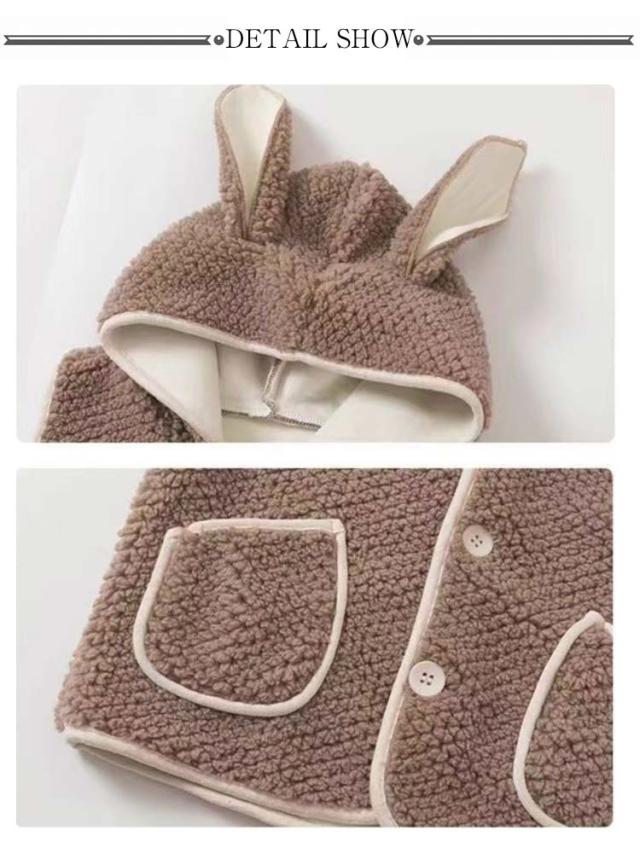 | 耳付きディザインで可愛くて暖かいです。 長時間着用してもストレスなく過ごせる軽い着心地も魅力。 羽織るだけで、いつものコーデがさらに女の子らしい印象に仕上がります。 ふわふわでこれからの寒い季節には、 防寒防風対策としては重宝するジャケットです。 保育園、幼稚園、お出かけなどサッと羽織れて暖かさをキープくれます。 前開きなので、着脱しやすいです。 | |
