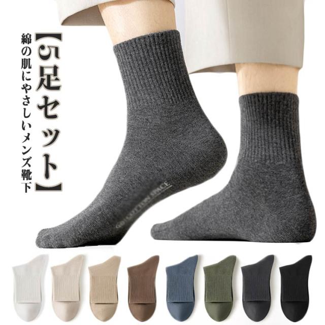 綿 クルー丈 ソックス 防臭 無地 くつ下 メンズ 厚手靴下 靴下 靴下 消臭 5足セット 抗菌 通気性 通年 ビジネス カジュアル 敏感肌 ナチュラル 誕生日 父の日 プレゼント