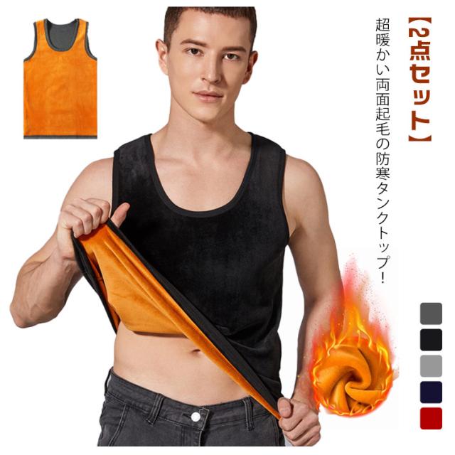 裏起毛 タンクトップ インナーシャツ 防寒 保温 あったかインナー タンクトップ 暖かい Uネック 両面起毛 あったか 部屋着 トップス 2点セット 冬用 メンズ 両面起毛 インナー ノースリーブ ルームウェア 秋冬 スポーツウェア L XL 2XL 3XL 4XL