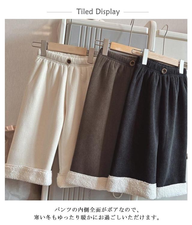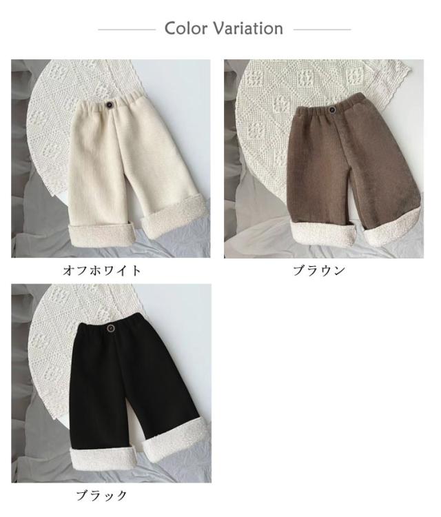 | 裏地が全面ぎっしりボア!あったか子供ワイドパンツ パンツの内側全面がボアなので、寒い冬もゆったり暖かにお過ごしいただけます。 ウエストゴム仕様なのでストレスフリーな着心地。 シンプルなデザインなのでどんなアイテムにも合わせやすい。 お出かけから通園通学まで大活躍間違いなし。 | |