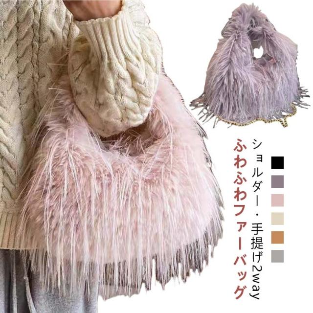 バッグ ふわふわ トートバッグ レディース 2way ショルダー 手提げ ショルダーバッグ ファートート 秋冬 ファートートバッグ 小さい トート ミニトート ファー 手提げバッグ ママバッグ お出かけ もふもふ もこもこ エコファーバッグ 手触り最高 上品映え 新作