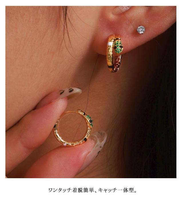 着脱簡単 ワンタッチピアス ゴールド フープピアス 蛇 レディース アクセサリー ワンタッチセグメントリング 蛇 2025 上品 ギフト プレゼント 贈り物