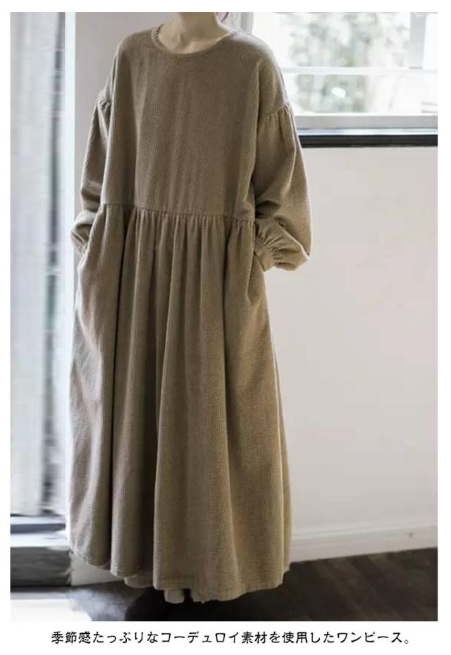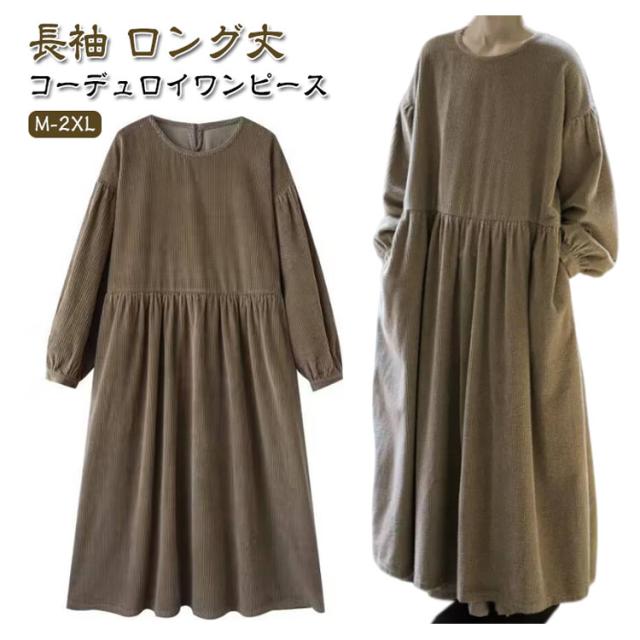 長袖 ミモレ丈 ワンピース 冬 レディース 春秋 秋冬 大きいサイズ ロングワンピース コーデュロイ ロングワンピ ワンピ 厚手 ミモレ ロング丈 Iライン ワンピース ゆったり 着?せ 体型カバー カジュアル 森ガール ファッション おしゃれ