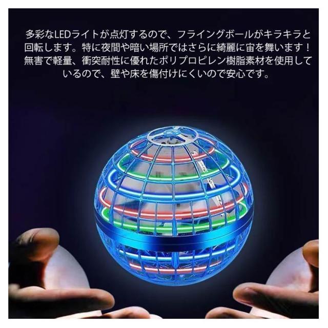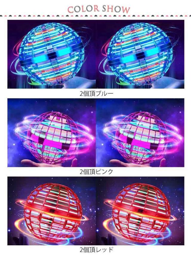 | 【2個セット】 【USBケーブル+リモコン付き】 球体型でLEDライトを備えたフライングボール! 複雑の操作がないので、より簡単に新しい遊び方が楽しめます。 多彩なLEDライトが点灯するので、フライングボールがキラキラと回転します。特に夜間や暗い場所ではさらに綺麗に宙を舞います!無害で軽量、衝突耐性に優れたポリプロピレン樹脂素材を使用しているので、壁や床を傷付けにくいので安心です。 USB充電方式なのでプラグ、パソコン、カーチャージャーなどに対応できます。 アウトドアでもしっかり遊べるフライングボールです。 | |