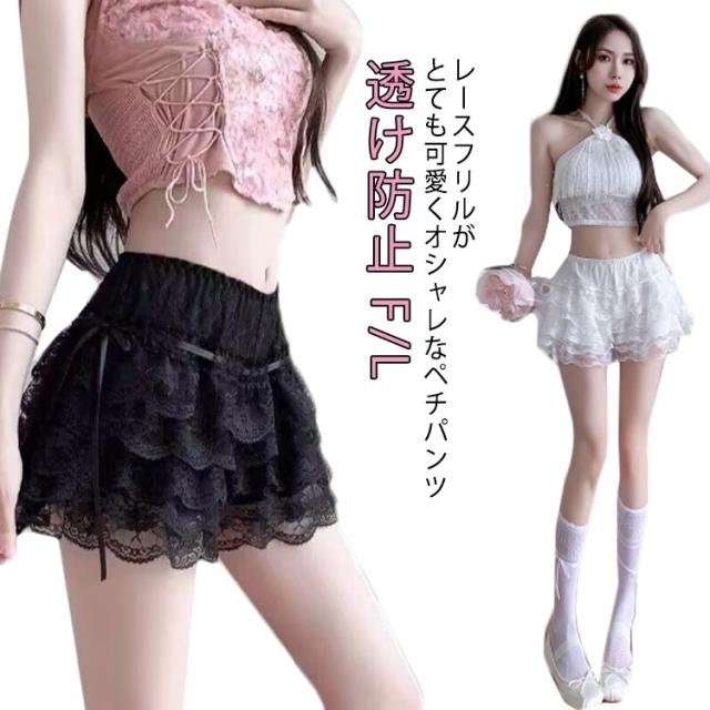 フリル ふんわり スカート ボリューム 1分丈 インナー レース ペチパンツ 肌着 キュロット ペチコート ゴスロリ ロリター ショートパンツ 透け防止 ワンピース 下着 コスプレ イベント 衣装 舞台