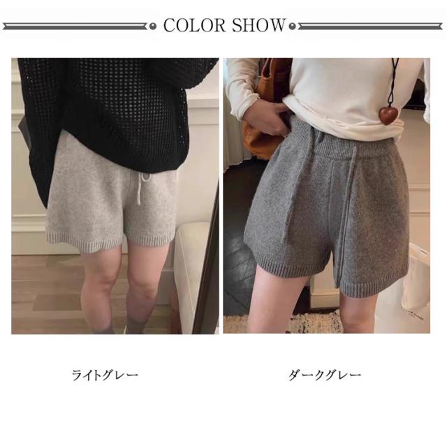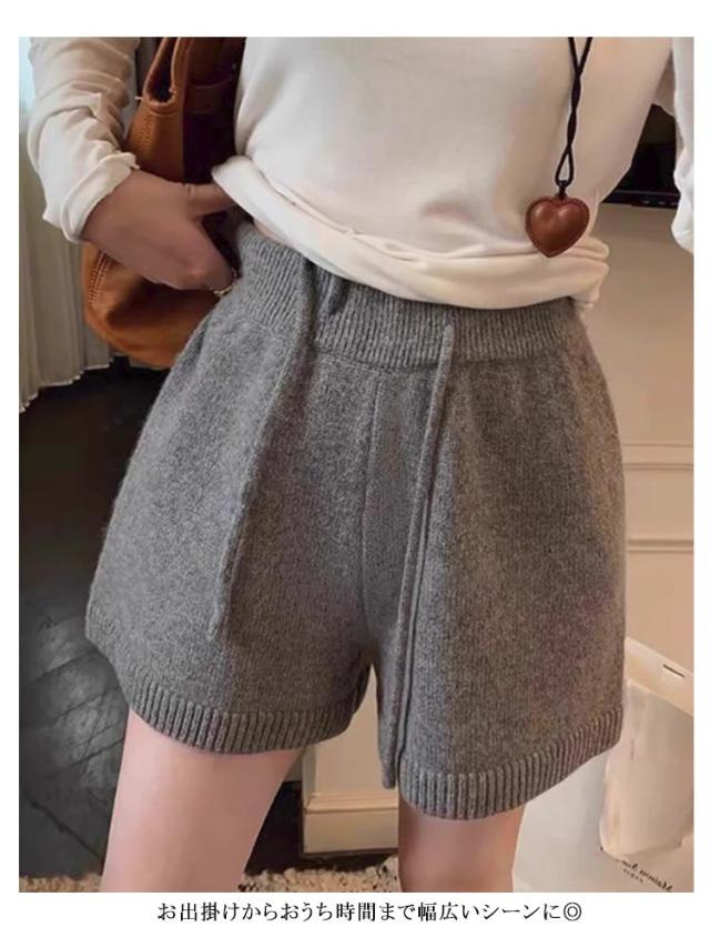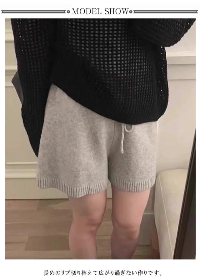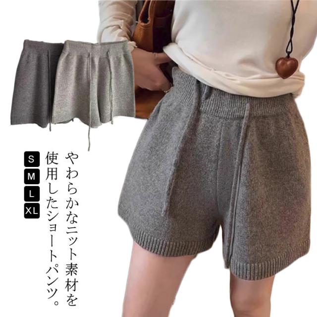 ショート丈 ニットパンツ レディース ウエストゴム ショートパンツ ショーパン ショートワイドパンツ ハーフパンツ リブ ニット ゆったり 短パン ボトムス ニット 部屋着 かわいい お出かけ 秋冬