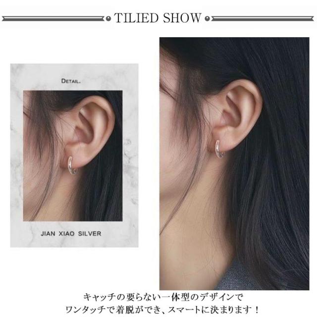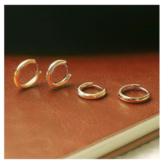 | 【2ペア!(4個入り)】 使いやすくシンプルなフープピアスです。 キャッチの要らない一体型のデザインでワンタッチで着脱ができ、スマートに決まります! 単体使いはもちろん重ね付けにもおすすめです。 シルバー、ゴールドからお好きな2色を選んでいただけます。 | |