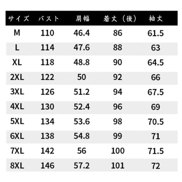 | サイズ | M L XL 2XL 3XL 4XL 5XL 6XL 7XL 8XL |