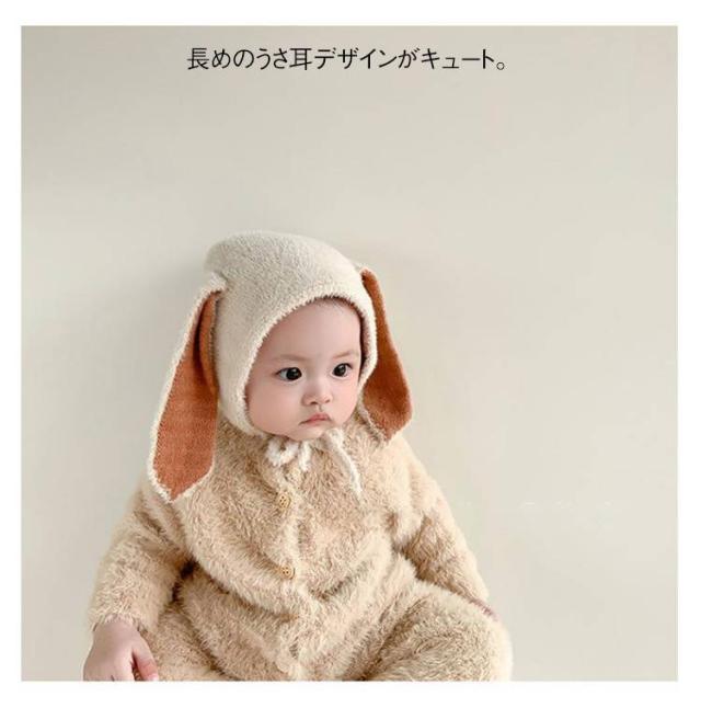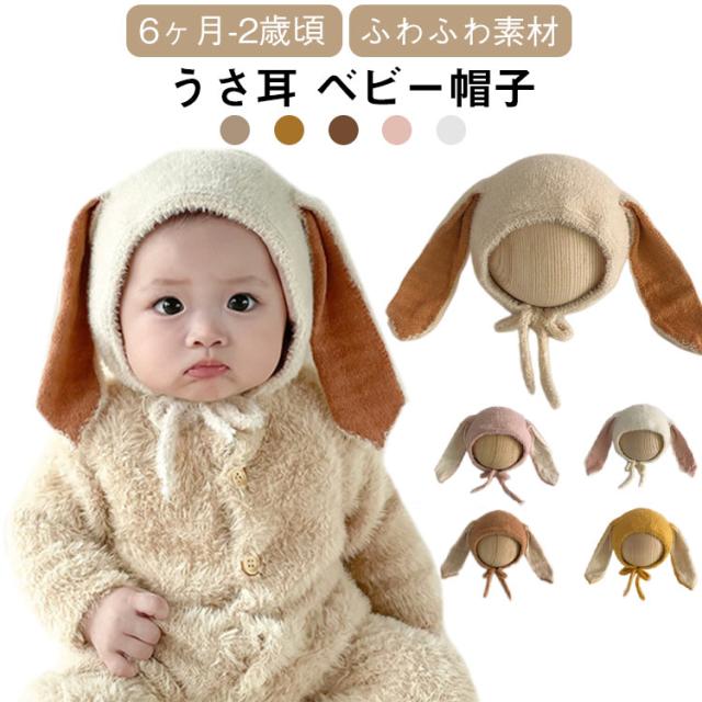 うさ耳 帽子 ベビー帽子 赤ちゃん 男の子 冬 秋 ベビー うさ耳 女の子 新生児 耳付き帽子 ウサギさん 子供 かわいい おしゃれ 保育園 1歳 誕生日 6ヶ月 44cm 出産祝い プレゼント