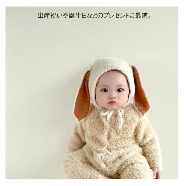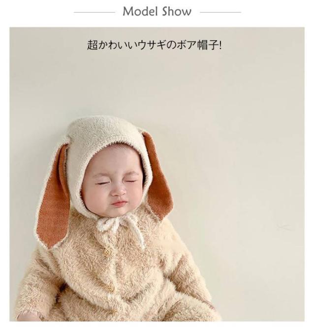 | 超かわいいウサギのボア帽子! 長めのうさ耳デザインがキュート。 肌触り抜群のふわふわ素材で、もこもこボアで防寒対策バッチリ。 出産祝いや誕生日などのプレゼントに最適。 | |