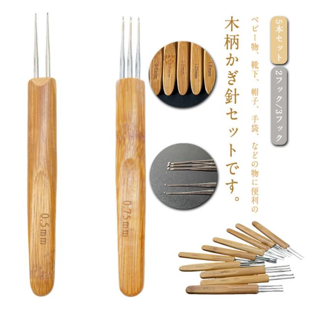 | 【5本セット】【2フック/3フック】 ベビー物、靴下、帽子、手袋、などの物に便利の木柄かぎ針セットです。 針先から糸がかけやすくて、糸を引き抜きやすい針先形状です。 編み針のハンドルに数値表記が付いて、手持ちの糸に合わせて使い分けができます。 天然竹柄の表面は滑らかで、持ちやすく、長時間の使用でも疲れません。 小さく軽量で、財布やポケットに入れて持ち運びが簡単になります。 | |