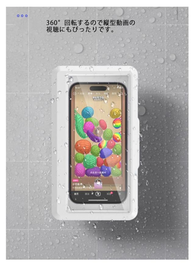 | ・おふろで動画や音楽を楽しんだり、キッチンでレシピ動画を見たりするのに便利な防水スマホケースです。 ・壁掛けなのでスマホスタンドを置くスペースの無い場所でも壁に取り付けられます。 ・スマートフォンをケースに入れたままタッチ操作可能 ・360°回転するので縦型動画の視聴にもぴったりです。 | |