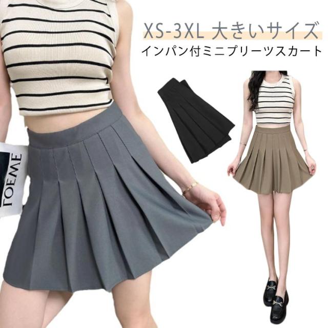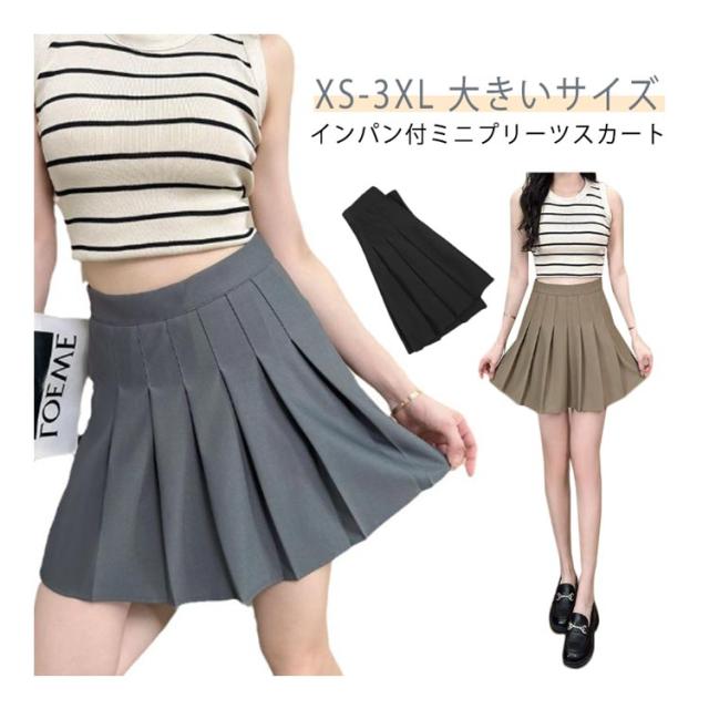 ミニスカ インナーパンツ付き プリーツスカート プリーツスカート 大きいサイズ ミニ丈 ショート ウェストゴム ガーリー シンプル お出かけ 着回し オフィス