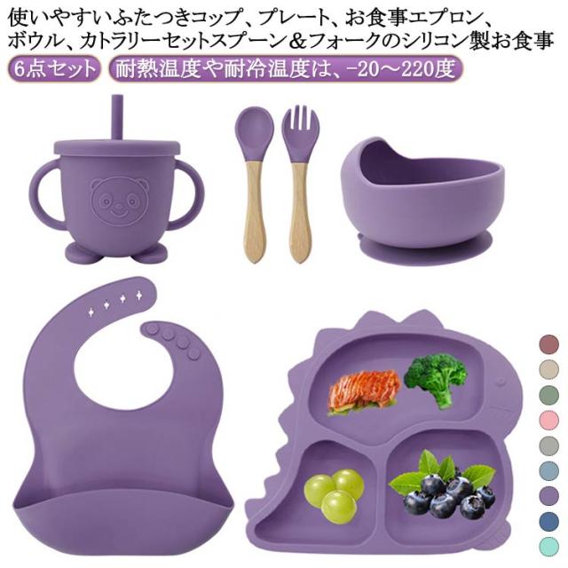 | 使いやすいふたつきコップ、プレート、お食事エプロン、ボウル、カトラリーセットスプーン&フォークのシリコン製お食事【6点セット】 ・耐熱温度や耐冷温度は、-20〜220度。 ・電子レンジ、食洗機が使用できます。 ・食品グレードシリコン使用。 ・BPA/PVCフリーでお子様も安心。 | |