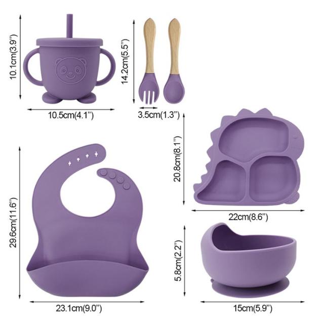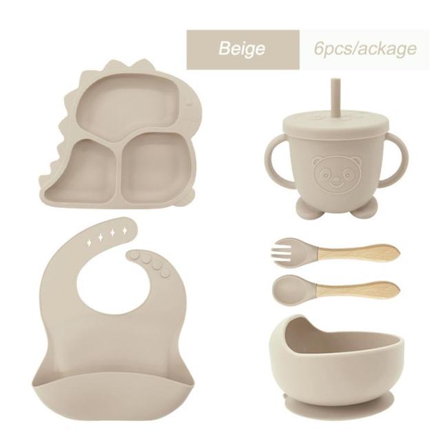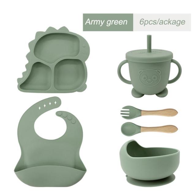吸盤付き シリコン ダイナソー 蓋 シリコン スプーン 6点セット マグカップ お食事プレート ボウル ベビー食器 ベビー 赤ちゃん エプロン フォーク 食器セット シリコン食器 お食事プレート シリコン 離乳食 男の子 女の子 幼児 食洗機対応