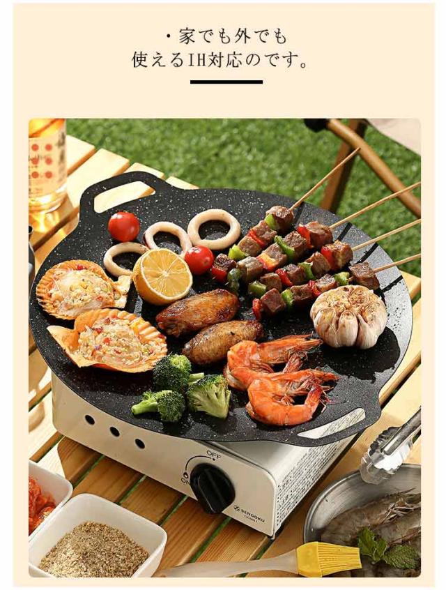 鍋 グリルパン プレート アウトドア 焼肉プレート 特殊コーティング フライパン 直火 パン IH対応 取っ手 BBQ 麦飯石 ステーキ ハンバーグ 焼肉 焼き魚