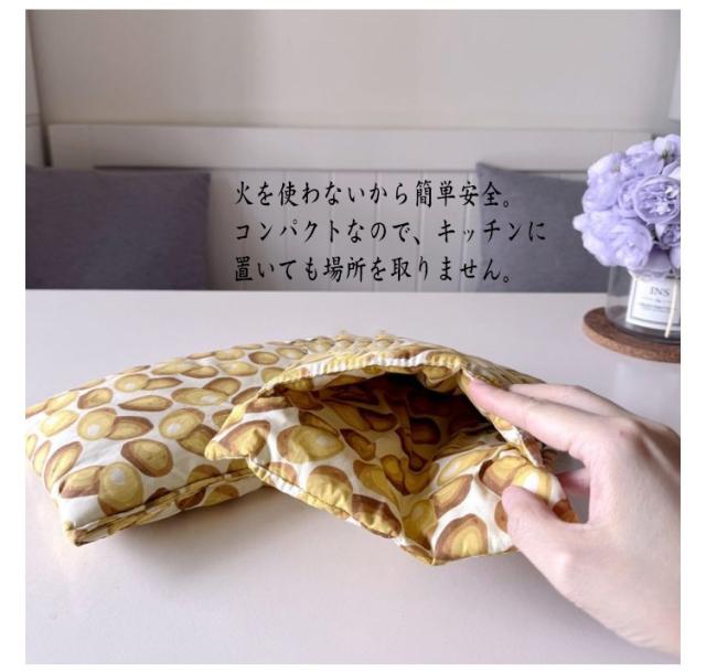 | お家で簡単お芋やさんは、手軽においしい焼き芋を作る便利なアイテムです。 使い方は非常に簡単!さつまいもをポーチに入れてレンジでチンだけ、自宅で手軽に焼き芋を楽しむことができます。 600Wで約6分、片付けの手間もいらないスピード調理。さつまいも、じゃがいも、トウモロコシなどもOK。 火を使わないから簡単安全。コンパクトなので、キッチンに置いても場所を取りません。 使わない時は収納もしやすく、そのままバックに入れて持ち歩ける便利グッズ。 焼き芋の仕上がりは、さつまいもの甘みがしっかりと引き出され、自然な甘さを存分に楽しむことができます。 | |