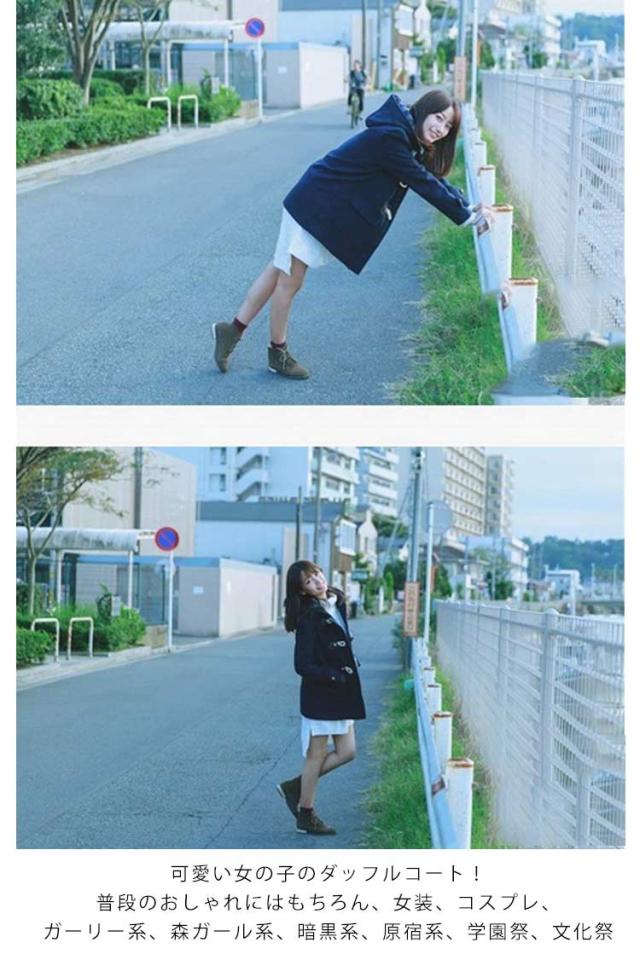 | ゆったりとした着心地。優しい肌触りで心地よいフィット感でした。 可愛いイメージのある着こなしがポイントのカジュアルコーデ。メルトン生地を使っているので防寒性も抜群。 可愛い女の子のダッフルコート!普段のおしゃれにはもちろん、女装、コスプレ、ガーリー系、森ガール系、暗黒系、原宿系、学園祭、文化祭、 イベント記念日、演劇、撮影、舞台、ハロウィン、クリスマスなども、さまざまな場合で活躍! | |
