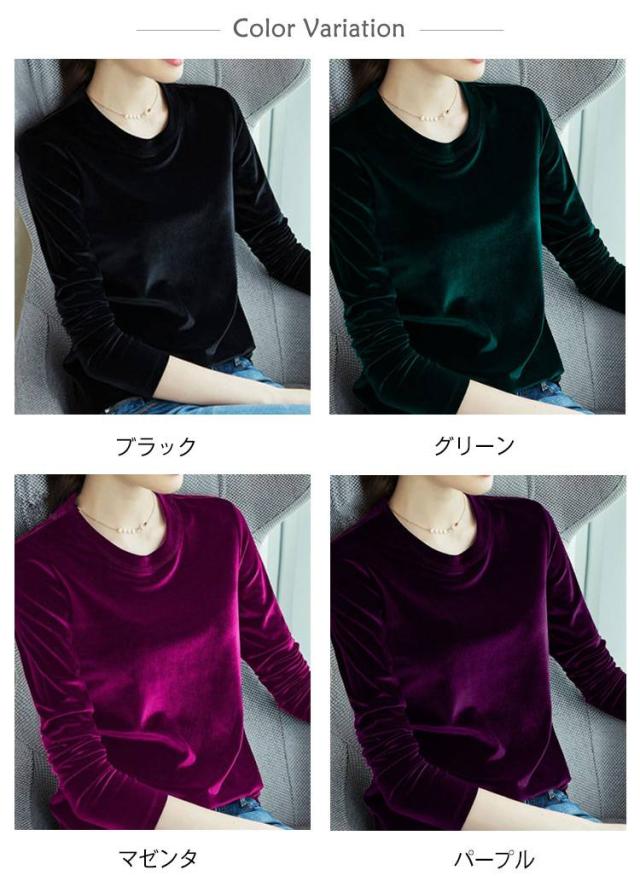ベロア ベロア レディース 春 長袖 クルーネック カットソー 秋 冬 トップス ベロアTシャツ キレイめ 丸首 光沢感 大きサイズ 暖かい 春服 秋服 秋冬 シンプル 無地 オフィスカジュアル