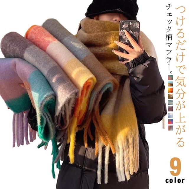 厚手 カラフル レディース マフラー ストール 秋冬 モヘア グラデーション 通勤 大判ストール おしゃれ 大判 チェックマフラー ショール 羽織り ひざ掛け 防寒 保温 大人 可愛い チェック チェック プレゼント ギフト 通学 誕生日 学生 旅行 【送料無料】