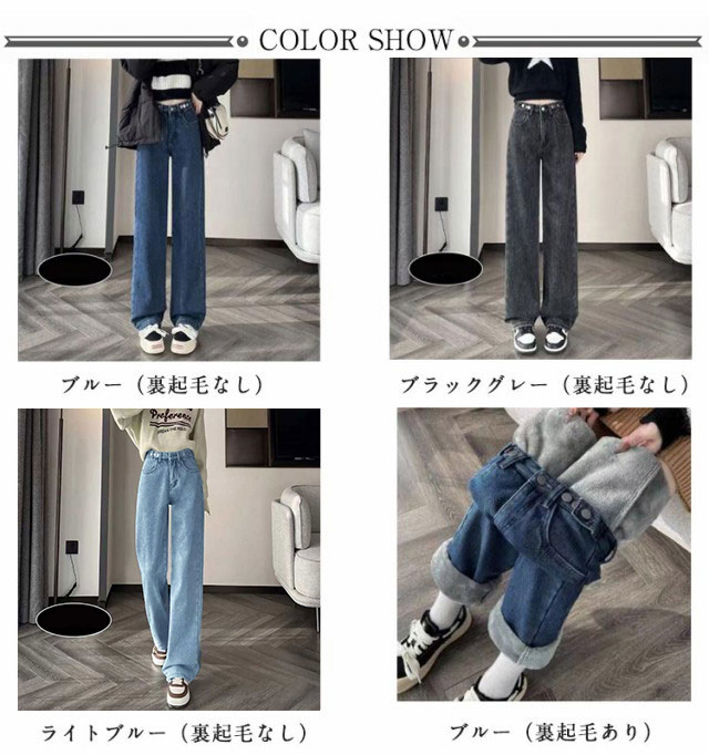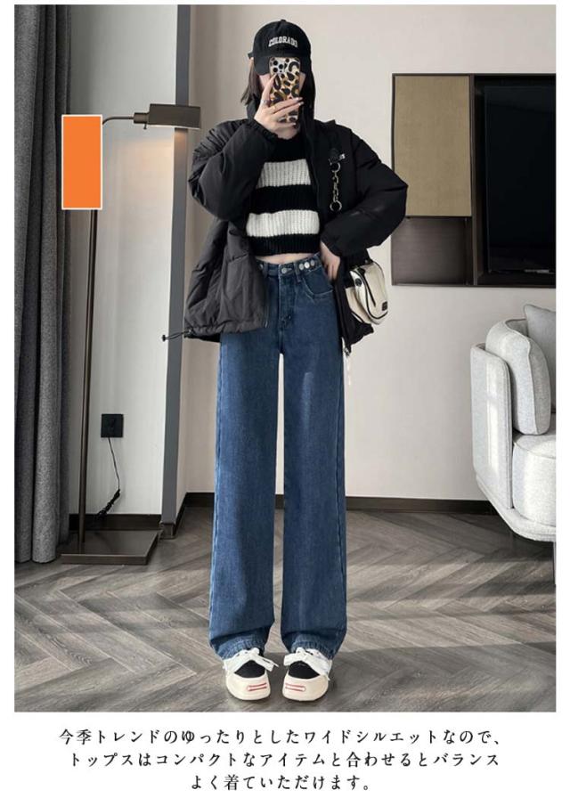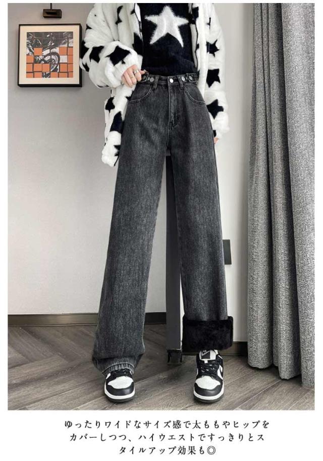 裏起毛 裏起毛 暖かい 裏ボア 体型カバー ワイドパンツ ボトムス ワイドデニム レディース 保温 デニムパンツ あったか ジーンズ 暖パン ボトム デニム ジーパン ストレート ゆったり ハイウエスト 裏起毛なし 春服 可愛い 秋 冬 小さいサイズ 大きいサイズ