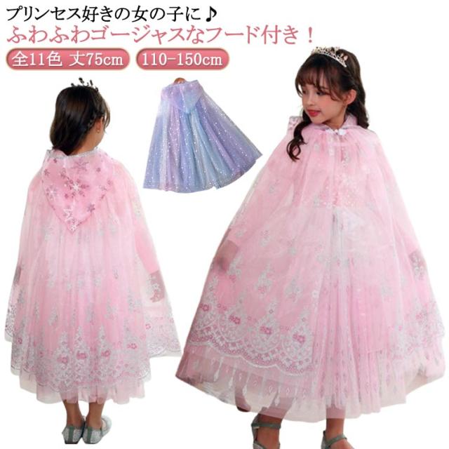 コスプレ 子供用 プリンセス マント 丈75cm プリンセス 子供 女の子 フード付き プリンセスドレス用被り物 全11色 コスチューム 100/110/120/130/140/150cm プリンセス 子供ドレス マント ケープ オールシーズン 仮装 演出服 衣装 被り物 上着