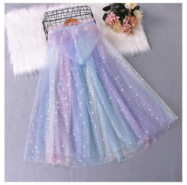 | プリンセス好きの女の子に♪ ふわふわゴージャスなフード付き! 薄くて軽いから夏のドレスにもピッタリマッチ! オールシーズン着用可能♪ 柔らかいふんわり軽やかメッシュ生地♪ お手持ちのお洋服にサッと羽織れば 素敵ななりきりドレスに変身! | |