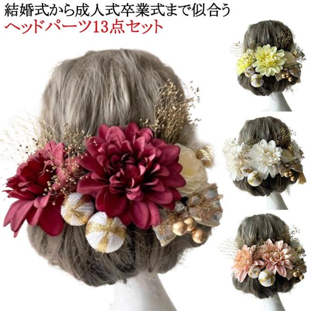 | 結婚式から成人式 卒業式まで似合うヘッドパーツ13点セット 袴の色に合わせたり、着物にはいってる花柄の色と合わせると統一感がでておすすめ | |