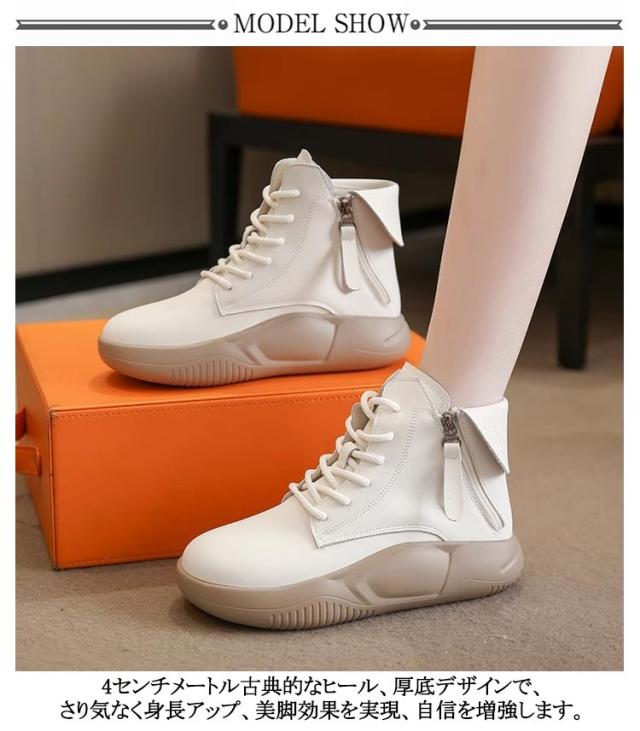 | 4センチ厚底ソールでスタイルアップ! 女性綺麗な姿を示し、視界が変わる魔法のシューズ。 4センチメートル古典的なヒール、厚底デザインで、さり気なく身長アップ、美脚効果を実現、自信を増強します。 靴紐なしの面ファスナータイプなので、靴紐を結び直す手間いらず!サッと履けてラクチン! アッパー(面ファスナー部分)はクロス仕様で存在感をプラス。 タンのロゴデザインもさりげなくオシャレ☆ | |