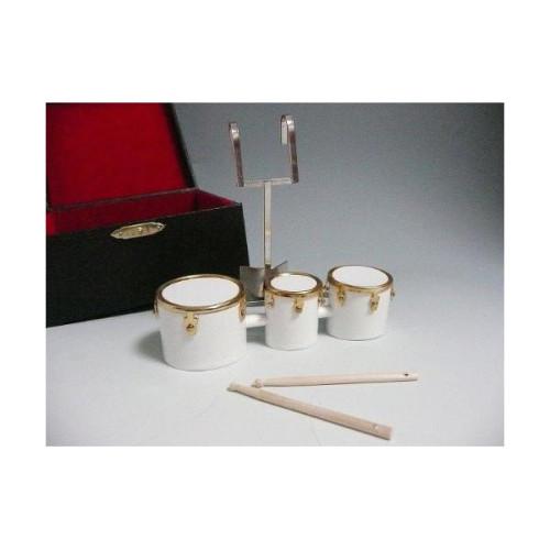 ミニチュア楽器 3連マーチングドラム (プラスチック・金属製)
