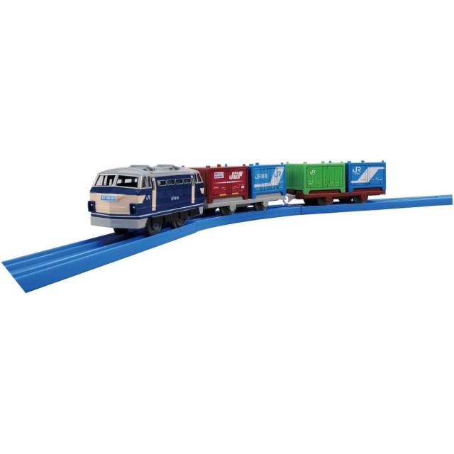 コンテナ車は別売りの「F-01 7000形コンテナ」「F-05 30Aコンテナ」「F-10 19Gコンテナ」や3両編成(別売)の「S-25 EH500金太郎」「S-52 EH200形電気機関車」のコンテナと積み替え遊びができます。