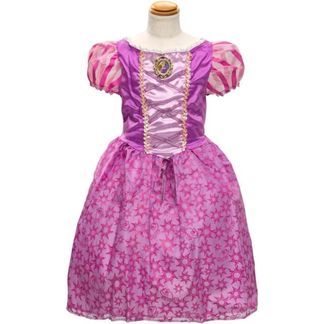 『塔の上のラプンツェル』の世界観を表現した総柄のプリントがドレス部分に描かれています。さらに胸元にはプリンセスのイラスト入りのキラキラしたブローチがついていてカワイイ!イラストデザインが新しくなりました。お誕生日やお友達とのパーティーにハロウィン、特別なおでかけにもこのディズニープリンセスのドレスを着ればあなたもプリンセス気分!?