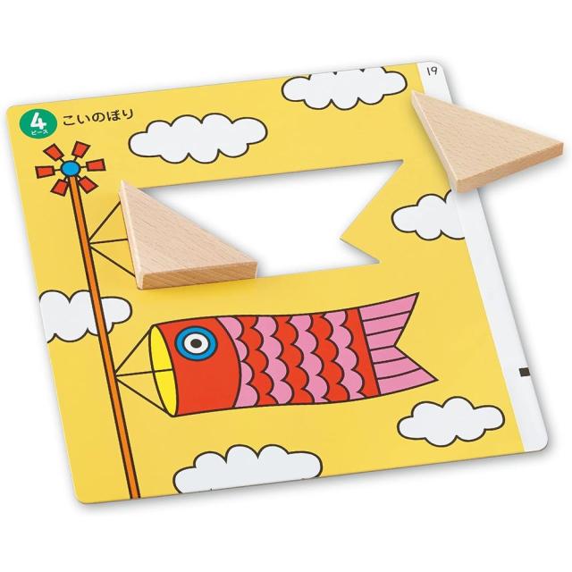 1ピースからはじめ、数をだんだんと増やしながら、最終的には8個のピースを組み合わせて形をつくります。ピースの形がすべて同じなので、幼児でも簡単に図形に親しむことができます。